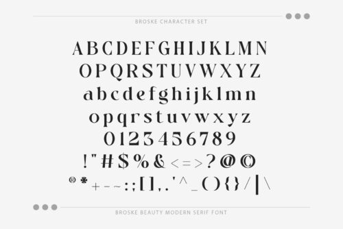 Introducing **Broske** A beautiful and elegant serif look. With its modern and minimalist appearance, Broske brings a luxurious, classy and clean impression to the projects you need such as websites, modern logos, branding identities, social media quotes, wedding stationery, magazines and various other needs!